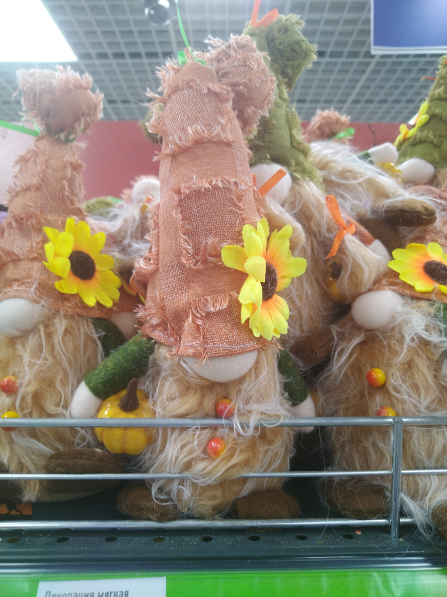 Приветики мои дорогие, как у вас дела? Я сегодня решила себя побаловать, и прошлась по магазинам, посмотрела что продают, да помечтала немного. Нравится мне всё красивое, чтобы дома уютно было, поэтому я в фикс прайс зашла, посмотреть на новинки осенние и зимние. Вот такие гномики очень понравились, я даже одного купила, Бабуле подарю, она тоже любит красивые вещи. Гномик вроде и летний, но с тыквой, сразу на 2 сезона пойдет. Мне кажется, он отлично впишется в деревенский интерьер. Домой приехала и пожалела, что всего одного гномика взяла, ведь можно было второго в подарок Алешке подарить. Из осеннего очень понравился декор с тыквами, но мне ставить некуда. Да и посуды красивой у меня много, а я экономлю сейчас, только самое необходимое беру. А ещё вот такие штучки понравились, это гирлянда новогодняя, очень необычная. И даже мишура в продаже появилась. Я когда зарплату получу, большую закупку сделаю, потому что к новому году обязательно все разберут, всегда так. Потом смотрю -