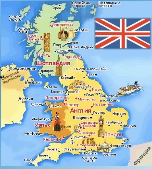 Англия — крупнейшая и самая южная часть Великобритании, занимает центральную и южную часть острова. На северо-западе Англия граничит с Шотландией, на западе — с Уэльсом, а на юге омывается проливом Ла-Манш, который отделяет её от материковой Европы. Северное море и Ирландское море омывают её восточное и западное побережья соответственно. Население: Население Англии составляет около 56 миллионов человек, что делает её наиболее густонаселённой частью Великобритании. Страна является мультикультурной и многонациональной, что обогащает её культурную и социальную среду. Основные города: Лондон — столица и крупнейший город страны, всемирный финансовый и культурный центр. Бирмингем — второй по величине город, известный своей промышленностью и культурными событиями. Манчестер — центр музыкальной и спортивной культуры, особенно известен своим футбольным клубом. Ливерпуль — знаменит как родина группы The Beatles и один из крупнейших портов страны. Бристоль — город с историческим значен