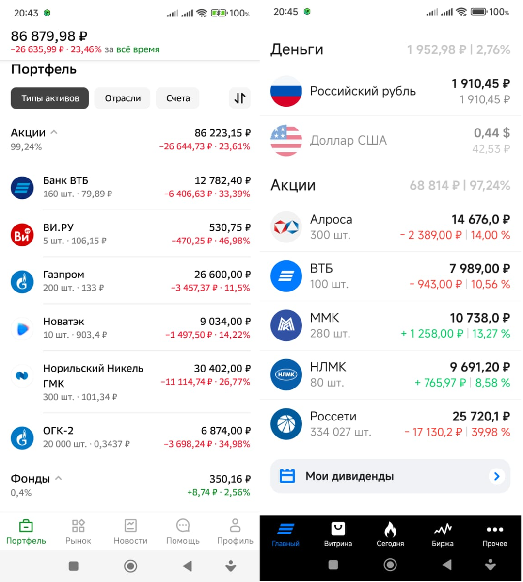Начну с того, что продемонстрирую скромные остатки своих портфелей.