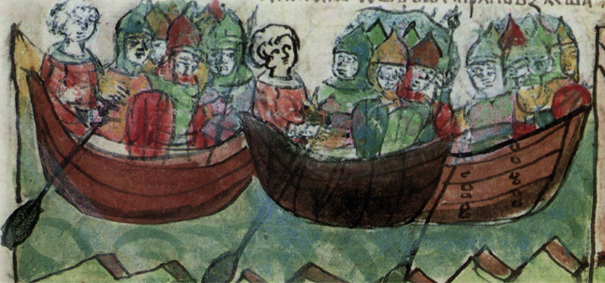 Утро застало дружинников на виду Куябы. Вольга дремал у руля. Игрь и другие сонно водили веслами по воде. От холодной ночи всех била дрожь. На востоке распускались розовые бутоны. Всходило солнце. Вольга раскрыл глаза и потянулся, накреняя лодью и треща костями.