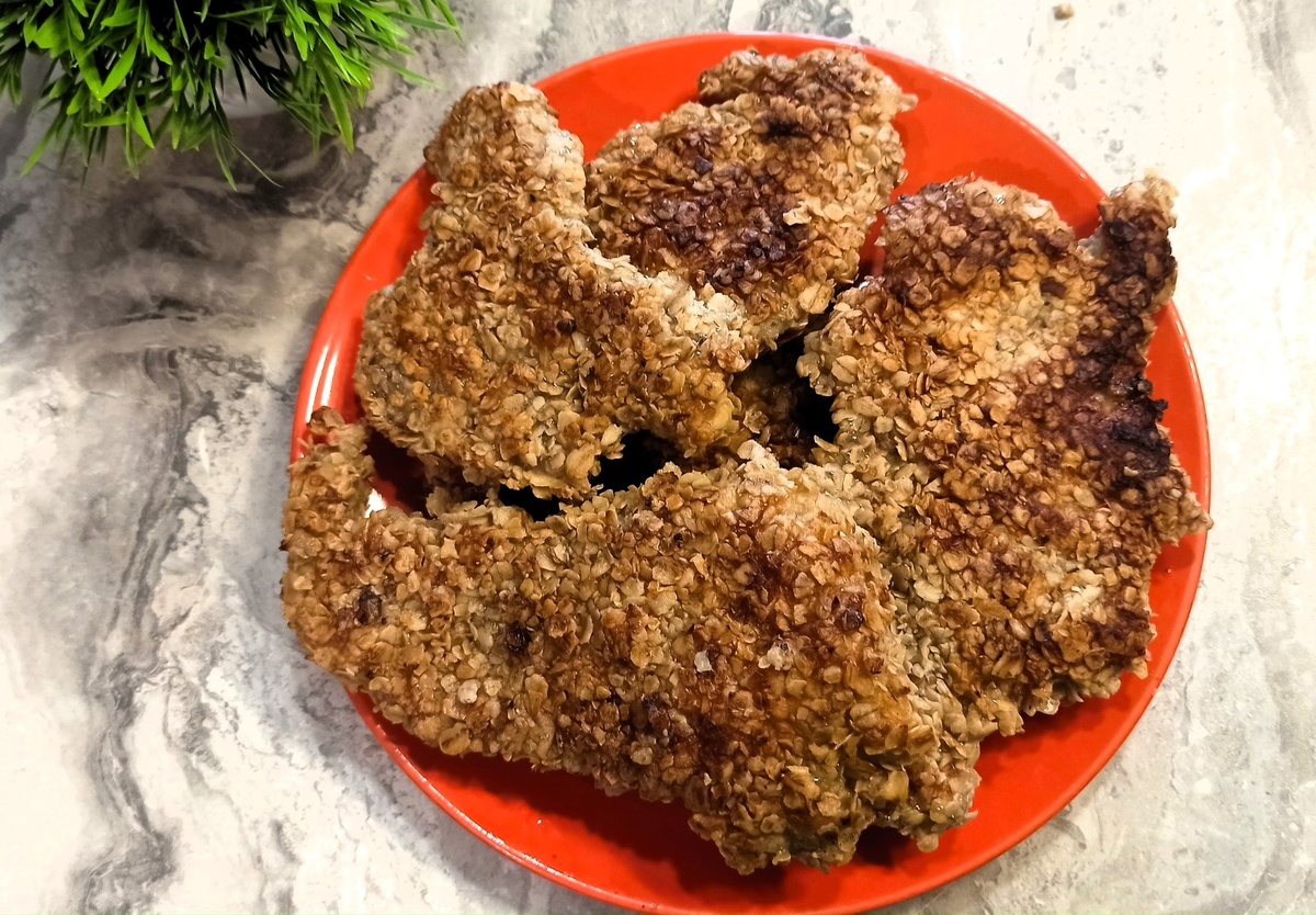 Отбивные из свинины в панировке из овсяных хлопьев. Нежно и сочно внутри, хрустяще снаружи