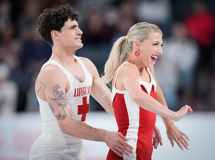Канадцы Пайпер Гиллес и Поль Пуарье – главные любители экспериментов в танцах на льду. Чего только стоят их оранжевые комбинезоны в олимпийском сезоне. В этом году они пошли дальше – и подготовили сразу несколько комплектов для одного танца. И все незабываемые. Тема ритм-танца в этом сезоне – социальные танцы и музыкальные стили 50-60-70-х. Многие пошли по проверенной схеме – взяли хиты Элвиса Пресли и The Beatles, но действующие вице-чемпионы мира Гиллес и Пуарье придумали особую историю. Они выбрали группы из Калифорнии – The Beach Boys и The Surfaris, да и тему развивают соответствующую – солнечную и зажигательную. «Наша программа под The Beach Boys – это абсолютный взрыв. Мы называем ее «Барби и Кен». Барби презентовали в 1959-м, она уже в духе 60-х. Барби и Кен отправляются на пляж – вот что происходит в этой веселой программе», – рассказывала Гиллес накануне старта Гран-при. А какая Барби без нарядов? Именно этим руководствовались Пайпер и Поль при подготовке к сезону – для Пуарь