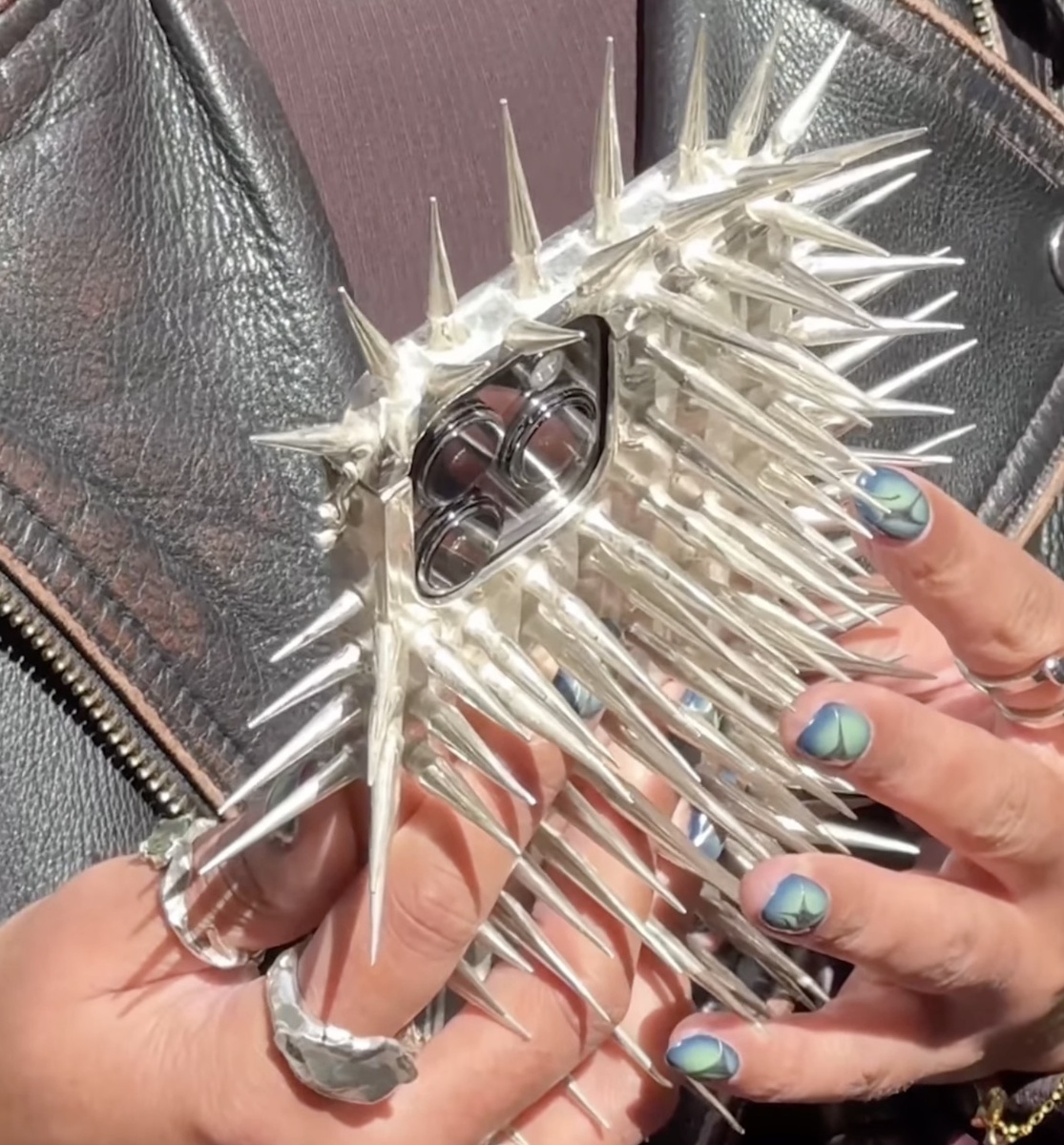 Чехол со всех сторон окружён большими шипами и, по идее, должен остановить грабителя. Чехол изготовлен из «510 граммов чистого серебра», что бросается в глаза.