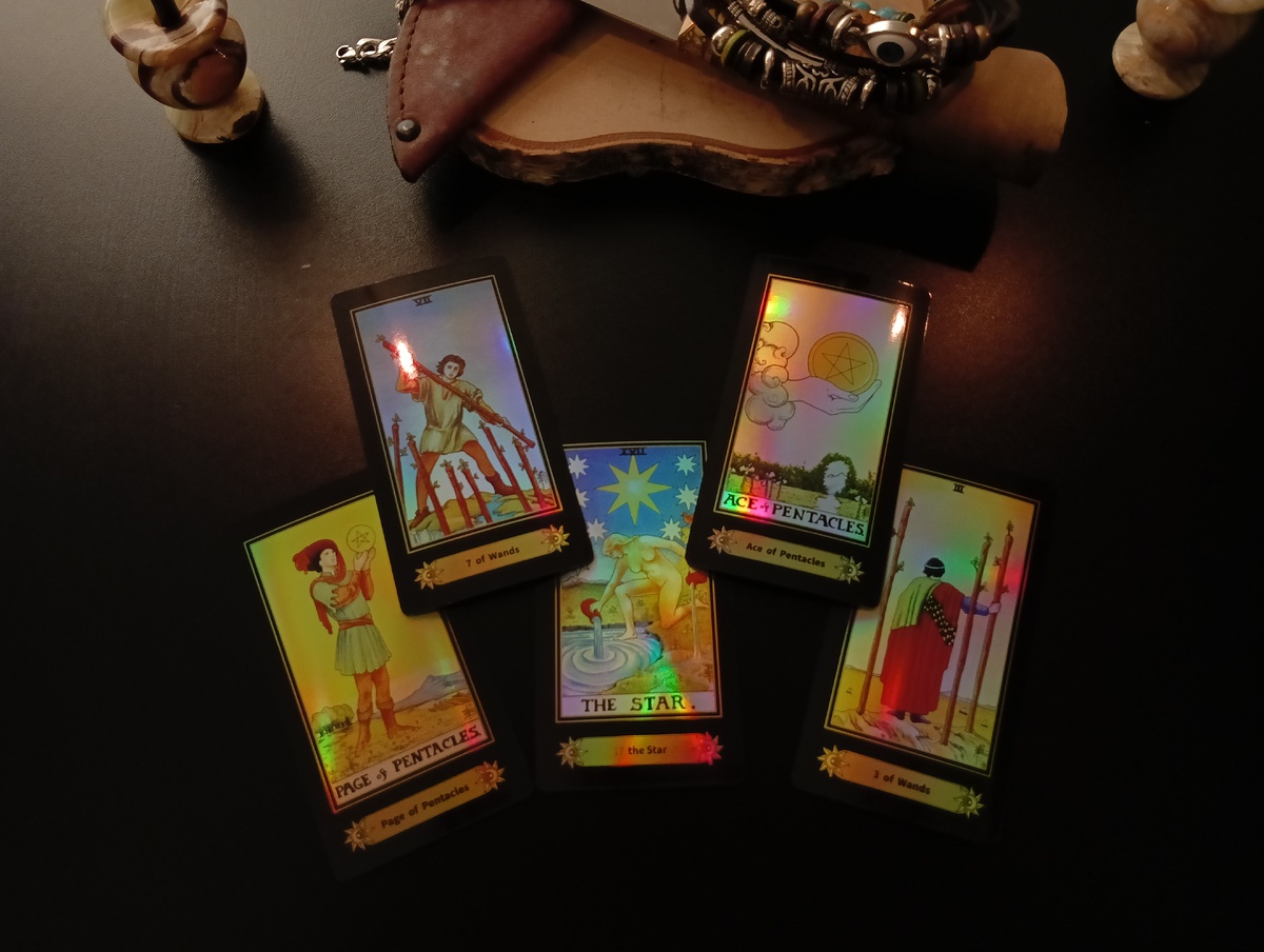 Перед нами образ человека, который искренне и глубоко заинтересован в вас. Он, вероятно, моложе или обладает юношеским задором (Паж Пентаклей). Он готов преодолевать препятствия и бороться за ваше внимание (Семёрка Жезлов), так как видит в вас свою вдохновительницу (Звезда). Его намерения серьёзны – он желает построить с вами стабильные отношения (Туз Пентаклей) и уже планирует общее будущее (Тройка Жезлов).