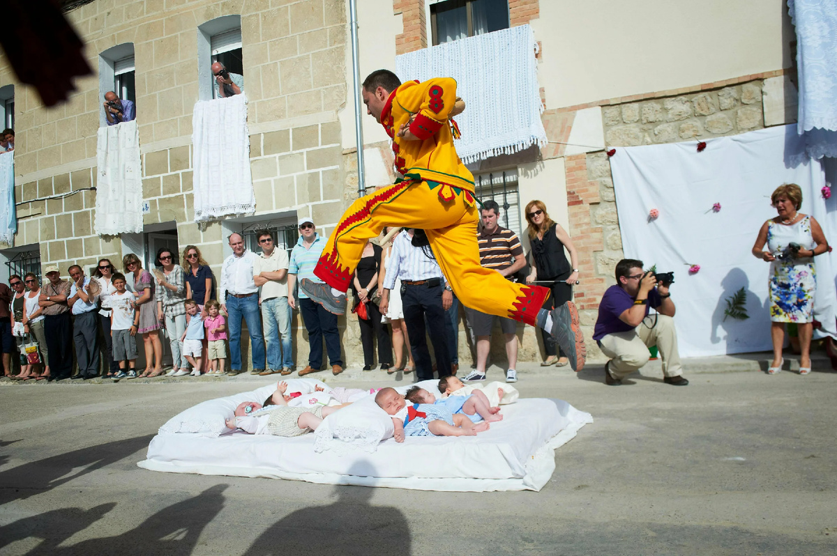 🤔 Как бы вы отреагировали, если бы вам предложили прыгнуть через младенца? Это звучит странно, но именно так происходит в одном из уголков Испании. 🌍 Мир полон необычных и удивительных традиций, которые могут показаться странными и даже шокирующими. В этой статье мы расскажем о самых любопытных обычаях, которые до сих пор соблюдаются в разных странах. 🧳 Традиции — это важная часть культуры каждого народа. Они передаются из поколения в поколение и служат связующим звеном между прошлым и настоящим. Некоторые обычаи могут быть понятны и привычны только местным жителям, но для других они могут показаться странными и даже шокирующими. Тем не менее, они продолжают жить, показывая нам, насколько разнообразен и интересен наш мир. 🌎 Эта традиция существует в Испании более 400 лет. В небольшой деревне Кастрильо-де-Мурсия во время праздника "Эль Колачо" мужчины, одетые в костюмы дьявола, перепрыгивают через младенцев, лежащих на матах. 😮 Считается, что такой прыжок очищает детей от грехов и