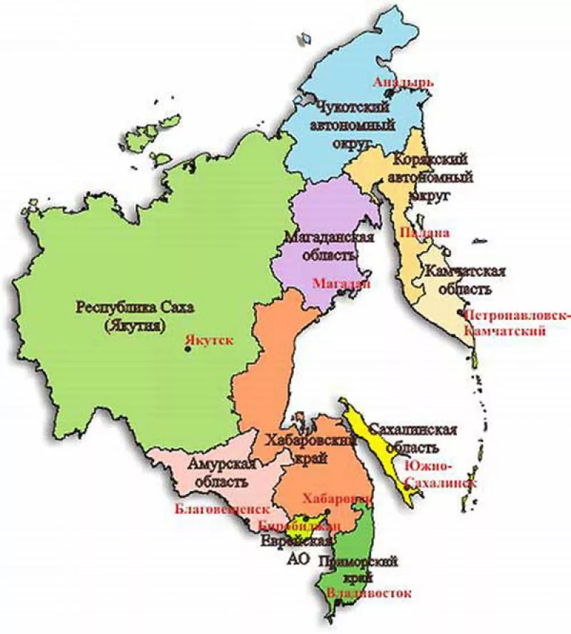 Дальневосточный федеральный округ самый крупный по размеру территории в Российской Федерации, он включает в себя 11 субъектов: