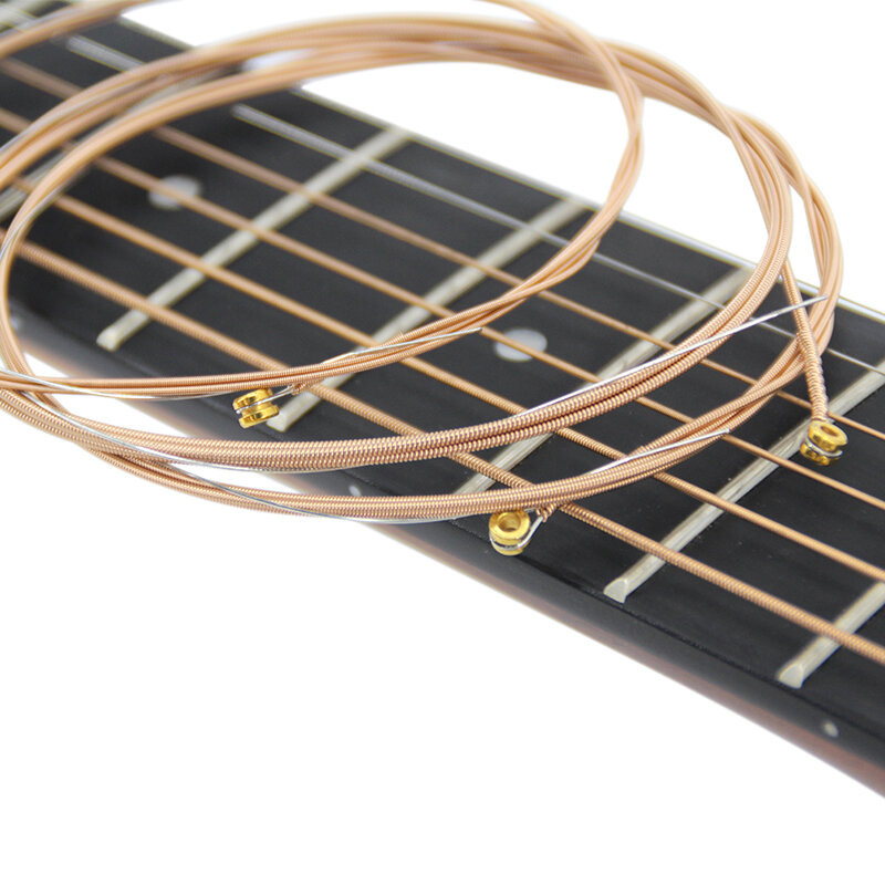 Струны для акустических гитар изготавливаются из самых разных материалов, включая бронзу, никель, фосфор, сталь, шелк и алюминий.