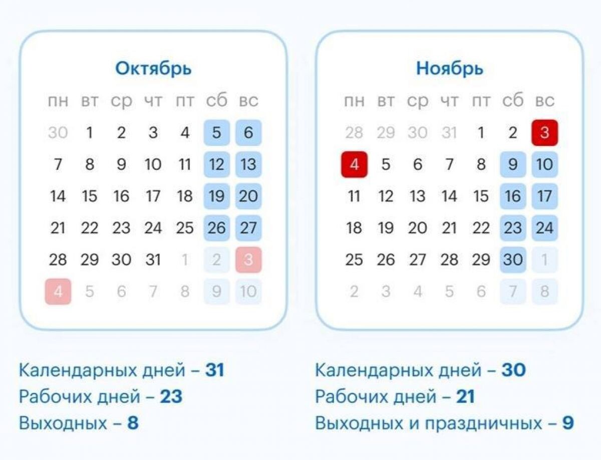 Согласно производственному календарю, утвержденному правительством, с 28 октября по 2 ноября суббота станет рабочим днем. Это связано с переносом выходного дня из майских праздников. Однако после долгой шестидневки брянцы смогут отдохнуть два дня — 3 и 4 ноября.
