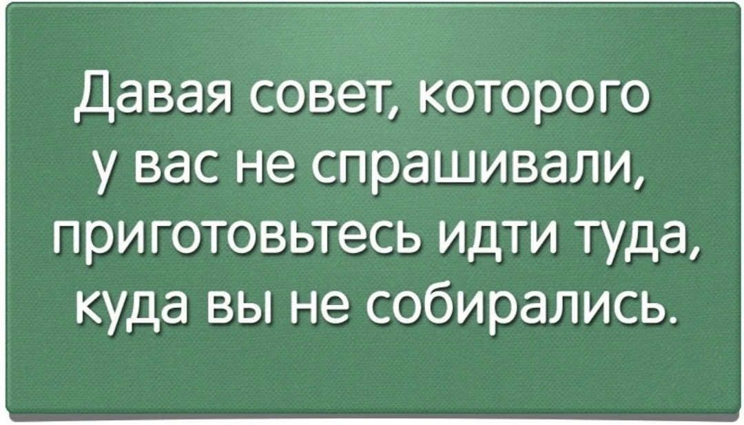 Сто раз зарекалась не давать советов и не предлагать помощь с услугой, пока тебя не попросят. Человек и так знает, что ему делать. Давно уже ни к кому не лезу с благими намерениями, даже от чистого сердца. Ими как говорят- этими намерениями выстелена дорога в ад. Но нет- нет, а чёрт дернет. Без заднего умысла, думаешь, может эти знания помогут человеку, ан нет, ему не надо, он тебя культурно высылает, и ты сидишь, оплёванный, отрехаешься, и зарекаешься не лезть своими советами. А ведь и в самом деле, я сама не люблю всякие советы, предположения о помощи, если не просила. Но порой об этом забываю. И когда я сама кого-то одёргиваю, люди считают меня неблагодарной хамкой, да-да, так и говорят. Хорошо хоть, я сама когда впираюсь в подобное, думаю лишь о том, что больше лезть ни к кому не буду. Хоть мозгов хватает не обижаться. Я задумалась, зачем я это делаю, получив по носу, зачем снова наступаю, на эти же грабли. Может память скоротечна, забывается, что тебя осадили и ты лезешь со сво