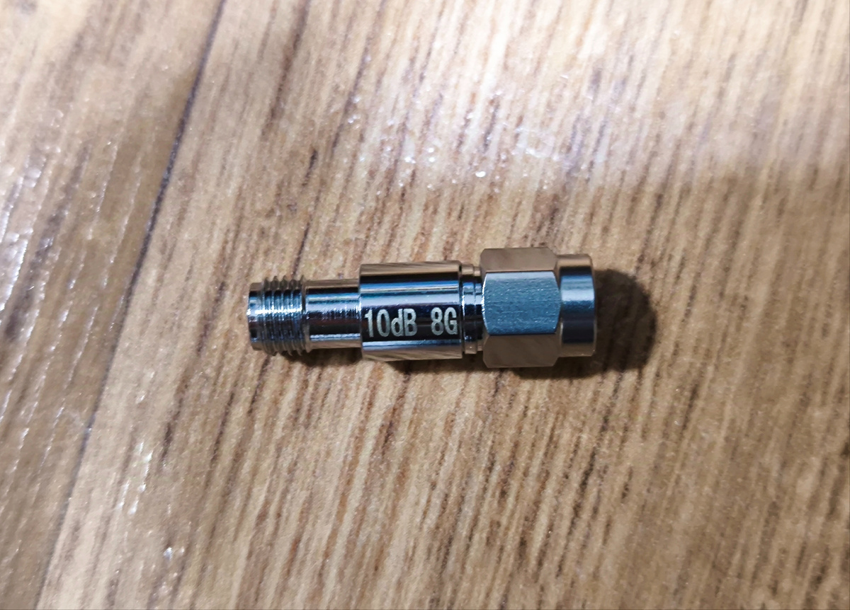Здесь разберемся как определять качество аттенюатора. Про аттенюаторы рассказывается в статье, общие представления: Замерим характеристики аттенюатора с заводской маркировкой: 10dB 8G 2w: В качестве измерительного прибора воспользуюсь LiteVNA. Рабочий частотный диапазон устройства: 50kHz-6.3GHz. LiteVNA нужно калибровать, об этом здесь: Подключаем аттенюатор к измерителю. Будем делать замеры на всем возможном для LiteVNA диапазоне частот 50kHz-6.3GHz. На LiteVNA два порта, Port 1 - порт с передатчиком и приемником (характеристика S11), Port 2 - порт с приемником (характеристика S21). S11 - характеризует отраженный сигнал, тот что был испущен портом 1 и в него же вернулся. "S11" я читаю как "Сигнал из порта 1 в порт 1". S21 - характеризует сигнал пройденный через аттенюатор. "S21" я читаю как "Сигнал из порта 1 в порт 2". Далее график, отражающий частотные характеристики аттенюатора. На графике S11 LOGMAG - уровень отраженного сигнала в dB, чем значение меньше, тем лучше - чем меньше си