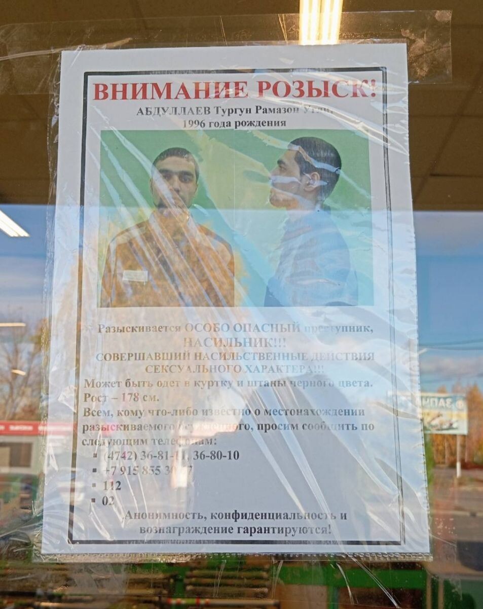 Ориентировки на осужденного, сбежавшего из исправительной колонии №2, развесили в Липецке. В них фотография и информация о 28-летнем Тургуне Абдуллаеве. Об этом сообщают "Новости Липецка" со ссылкой на телеграм-канал «Липецк с огоньком».