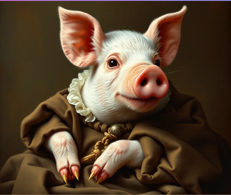 СКАЗКА: Настоящая свинья. Жили-были четыре поросёнка в загоне. Ели они арбузные корки и гнилую картошку из одного корыта, спали вместе в одном хлеву, вместе резвились в грязи. Все были счастливы и довольны каждым своим днем. Однажды в загон забрел умный, богатый, но одинокий старик. Не было у старика ни друзей, ни детей, поэтому взял он одного поросёнка к себе жить. И стал всему учить. Учил его с ложечки есть, ходить на двух копытах, носить костюм и разговаривать. Поросёнок этому научился быстро. Потом старик выучил порося чтению, письму и счету. Свин освоил и это. Молва о поросёнке быстро разлетелась по всему миру. Богатые и знатные люди стали приглашать старика со свином в гости. Все желали увидеть чудесное животное. Старик сделал свину паспорт, специальный поросячий, по всему свету стал его возить и показывать. Все дивились поросёнку, хвалили его. Поросёнок был вежлив, соблюдал этикет, поддерживал светские беседы. Все к кому он приходил на приём, как один, б