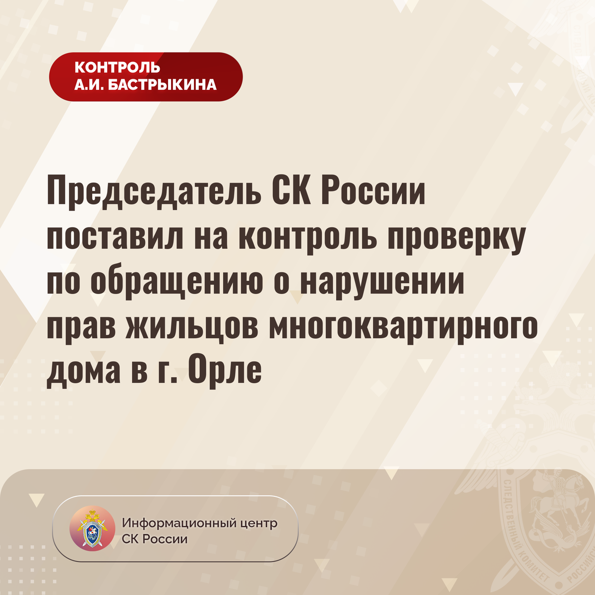Председатель СК России поставил на контроль проверку по обращению о нарушении прав жильцов многоквартирного дома в г. Орле