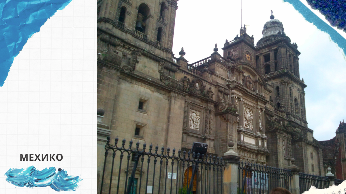 Нас привезли на главную площадь - Соколо, где когда-то стоял дворец последнего ацтекского правителя - Монтесумы, и повели в Кафедральный собор. Для его первоначального строительства использовали камни из разрушенного храма ацтекского бога Уитцилопочтли.