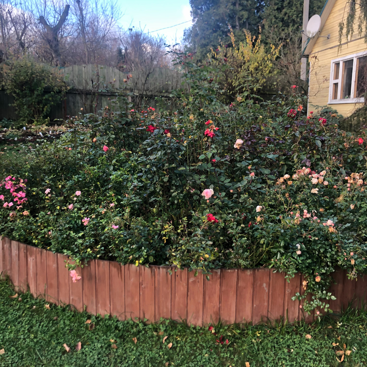 Подводя итог выходных хочется отметить, что погода выдалась на редкость благоприятная. Было достаточно тепло, днем температура поднималась до +10-11. И это в конце октября. Дождик принимался пару раз что в субботу, что в воскресенье. Но мы успели до дождя с утра в субботу подготовить к укрытию розы и установить укрытие. Можно выдохнуть. Розы под защитой в комфорте и сухости. Предварительно перед укрытием, сначала я выполняю несколько несложных процедур: 1. Прополка роз и удаление мульчирующего материала. Я в этом году мульчировала подсушенной скошенной травой, а от дождей и заморозков она стала подгнивать. Зачем оставлять это безобразие под сухим укрытием, проще убрать и отправить в компост. 2. Обрезка заключается в вырезании невызревших зеленых побегов, у которых шип сминается, а не обламывается с характерным щелчком. А также удаление слабых и больных побегов, которым сложно будет перезимовать. Также я обычно укорачиваю побеги до высоты 45-50 см, чтобы они легко помещались под укрыти