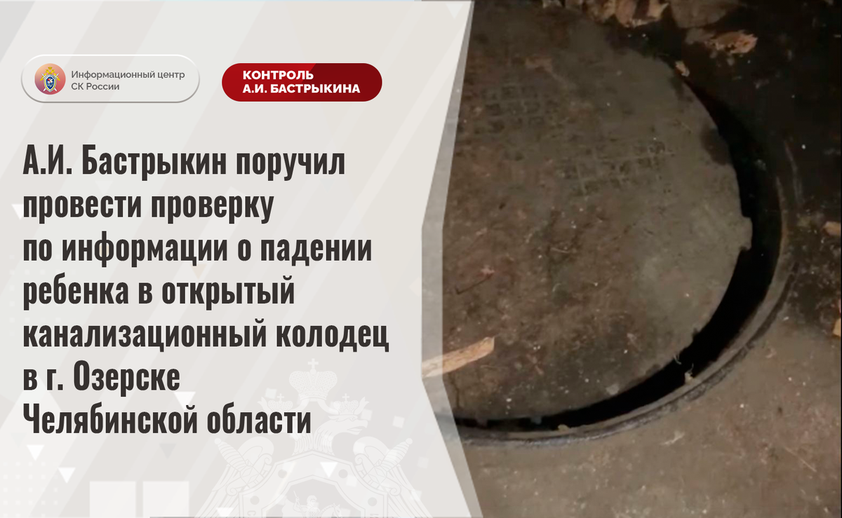 А.И. Бастрыкин поручил провести проверку по информации о падении ребенка в открытый канализационный колодец в г. Озерске Челябинской области