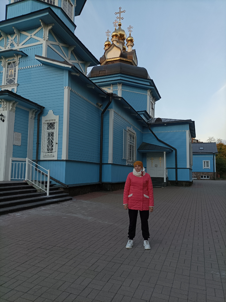 Дошли до церкви, на которую я до этого глядела только из-за забора больницы. Вовнутрь заходить я не решилась по понятным причинам, а вот по территории погуляли, на лавочке там посидели.