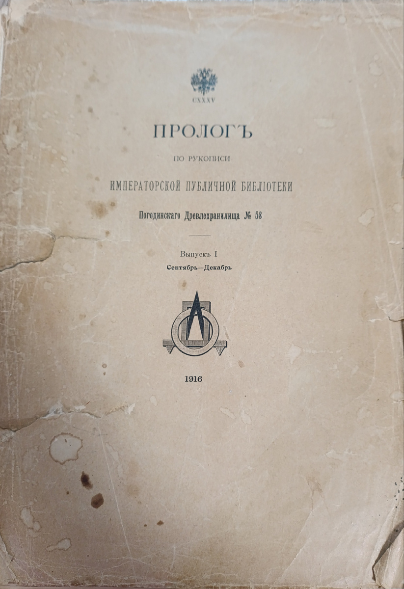 Пролог по рукописи императорской публичной библиотеки Погодинского Древлехранилища 58