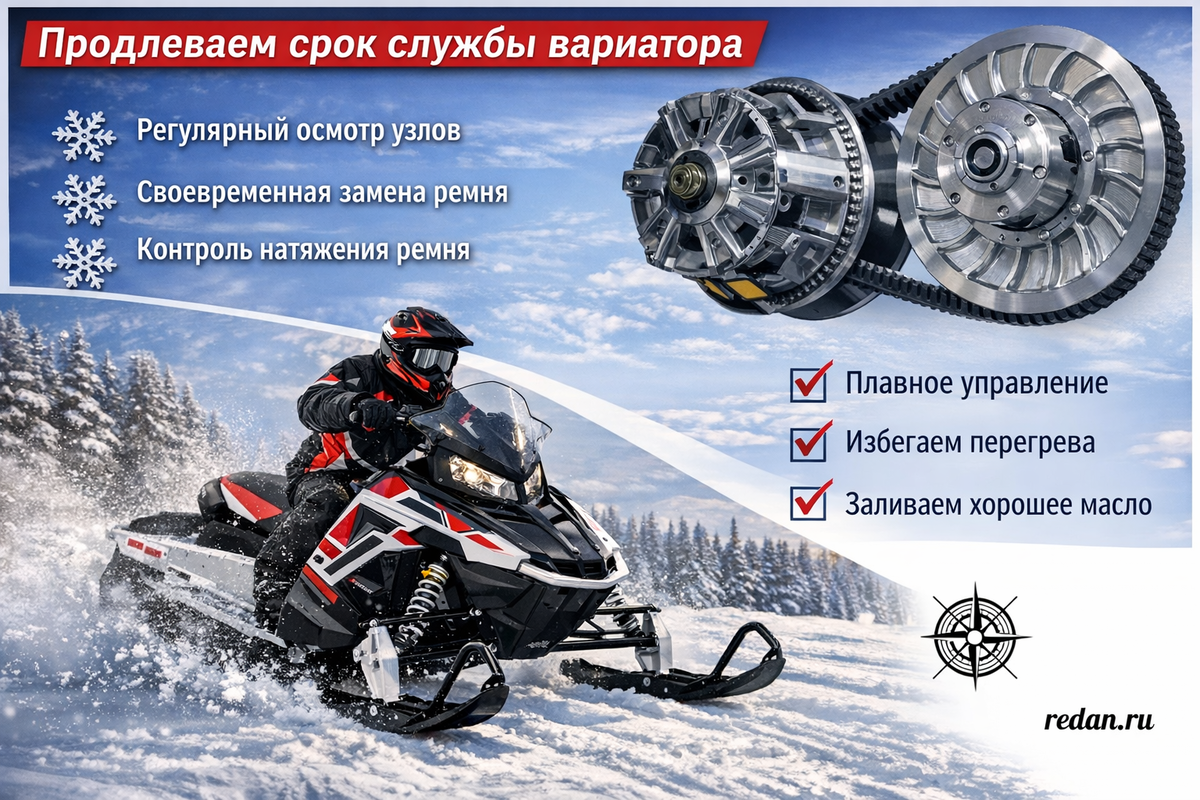 Вариатор – один из ключевых и дорогостоящих компонентов снегохода. Он отвечает за передачу крутящего момента от двигателя к зубчатым колёсам гусеницы, через коробку реверса и цепь. Средний срок службы этого узла, в частности первичной и вторичной (нагрузочной) муфты, около 15–25 тыс. км. Но иногда компоненты CVT изнашиваются или разрушаются намного раньше. В свою очередь правильная эксплуатация техники, надлежащий и своевременный уход, – могут продлить ресурс вариатора в два-три раза.