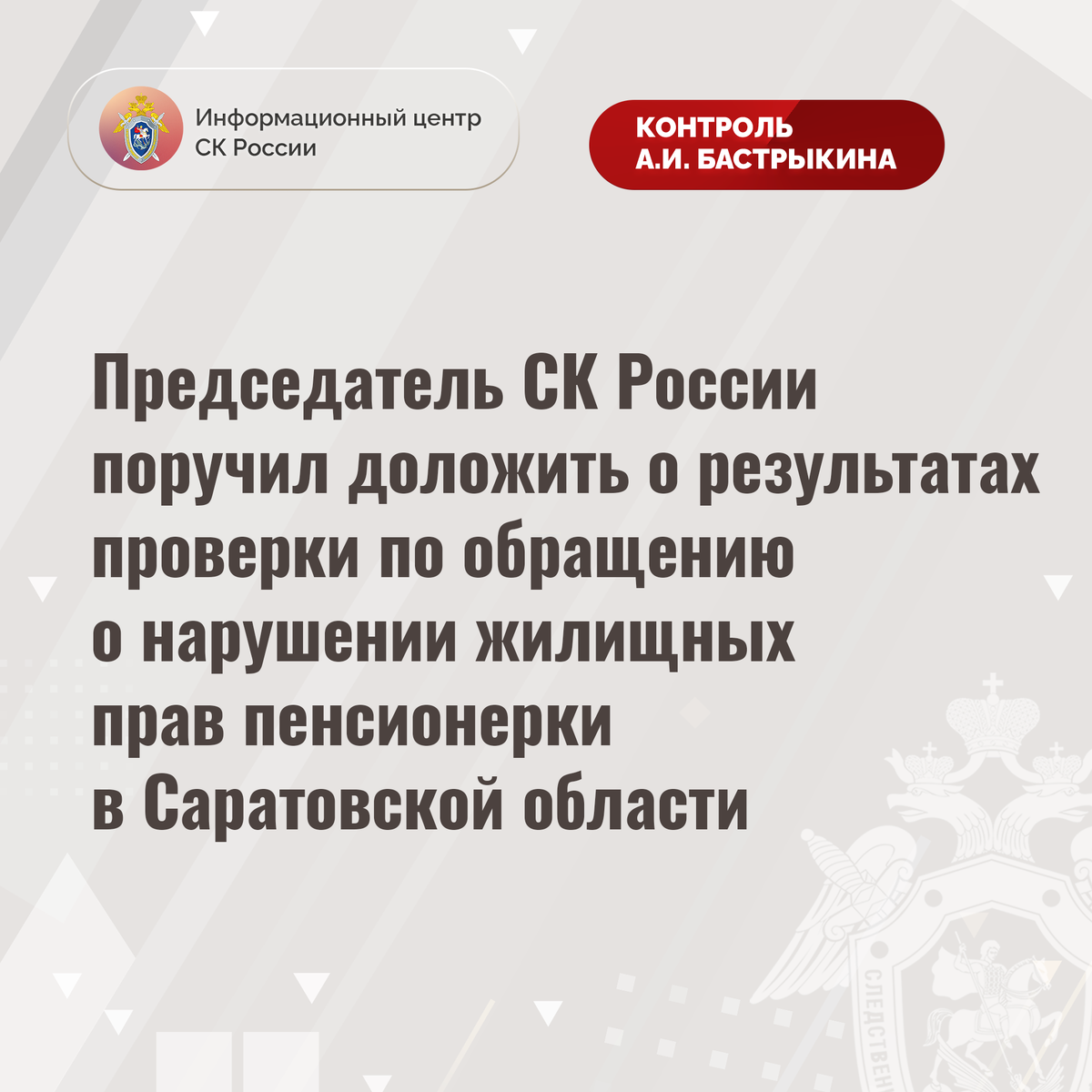 Председатель СК России поручил доложить о результатах проверки по обращению о нарушении жилищных прав пенсионерки в Саратовской области