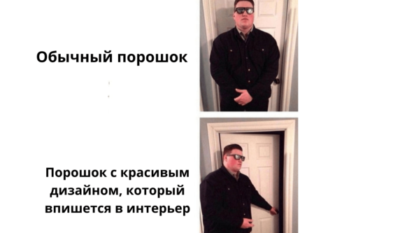 К тому же, такой порошок можно не прятать в закрытый ящик под раковиной в своей ванной комнате. Сейчас в интерьерах квартир актуален минимализм, все стараются избавится от визуального шума — и минималистичные упаковки порошка, прекрасно бы вписывались в интерьер, из-за не кричащего дизайна. А это, в свою очередь, помогает бренду расширять аудиторию потребителей, которые просто увидели классную вещь в гостях у друзей и захотели себе такую же.