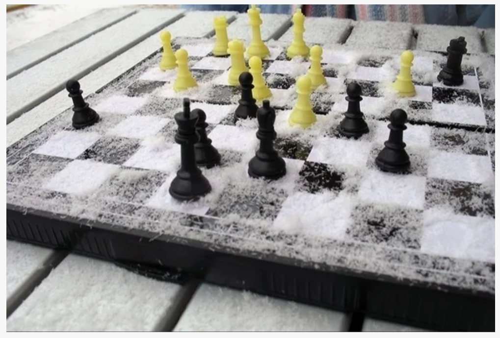 Мат в 1 ход "шахматы на снегу": кидаем снежный ком в черного короля 3 раза, оба - смертельно
