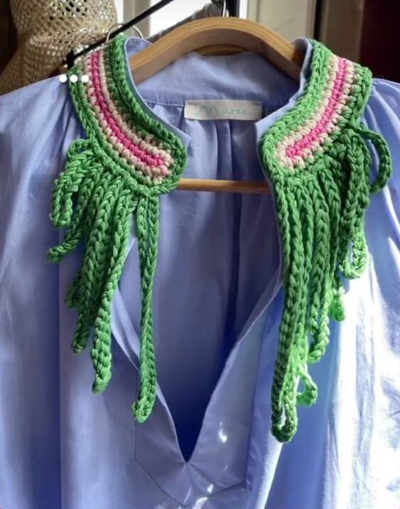 Искала иллюстрации к материалу об ажуре и нашла совсем не ажурные, но очень милые и яркие вязаные воротнички.
