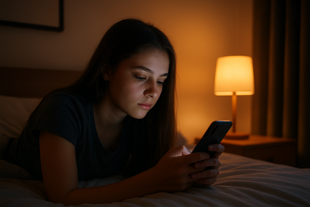 Алина лежала на кровати, окружённая мягким светом ночника. Весь мир за её дверью был далёким и приглушённым — ни звука, ни единого знака того, что где-то там есть настоящая жизнь. Всё внимание девушки было приковано к телефону.
