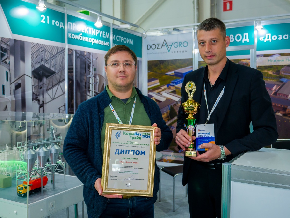 Компания «Доза-Агро» - призёр конкурса «Инновационные кормовые решения», организованного национальным кормовым союзом. «Доза-Агро» получила награду в номинации «Технологии и оборудование» за разработку умного комбикормового завода «Оптимум». Торжественная церемония награждения победителей состоялась 24 октября в рамках международной специализированной выставки кормов, кормовых добавок, ветеринарии и оборудования «КормВетГрэйн-2024».