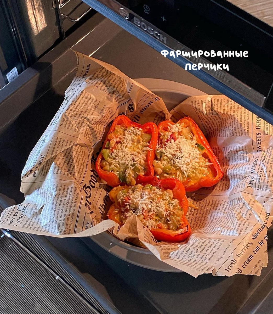 Иногда всё, что нам нужно, — это вкусный ужин семьей. Согласны? Я сторонница простых и легких блюд, но иногда хочется и заморочиться. С особой любовью отношусь к ужинам из духовки. При запекании продукты сохраняют большую часть витаминов и минералов, что делает блюдо полезным. Блюда приобретают особый аромат и вкус, что делает ужин более аппетитным. Вот мой личный топ-5 ужинов из духовки. 1.Фаршированные перчики в духовке Это блюдо отлично подойдет для семейного ужина или праздничного стола. Ваши близкие будут в восторге! Ингредиенты: Сладкий перец — 8 штук; Фарш (говядина, свинина или смесь) — 500 г; Рис — 100 г; Лук репчатый — 1 штука; Морковь — 1 штука; Помидоры — 2 штуки; Томатная паста — 2 столовые ложки; Сметана — 2 столовые ложки; Соль, перец, специи — по вкусу; Зелень (укроп, петрушка) — по вкусу. Приготовление: Совершенно просто и слишком вкусно. Всё, что вам нужно: Готовое тесто, любимый сыр, один яичный желток и два целых яйца. Пласт теста раскатать в прямоугольник, на кра