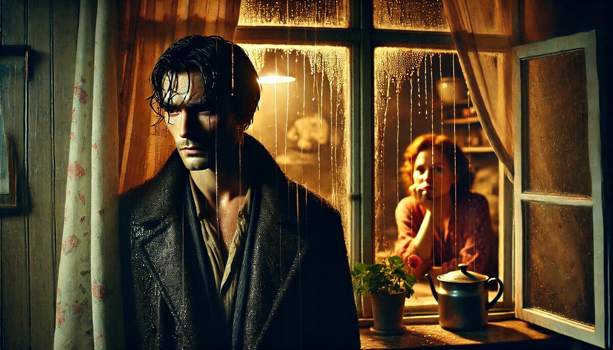 Она услышала его тихий голос сквозь шум дождя. Он стоял под её окнами, ссутулившись и, казалось, посеревшим на целый век. Его пальто промокло, волосы прилипли ко лбу. Она смотрела на него из полумрака своей кухни, прячась за шторой, а внутри поднималась горькая волна, наполняя сердце и напоминая о том, почему они оба теперь стоят у грани.