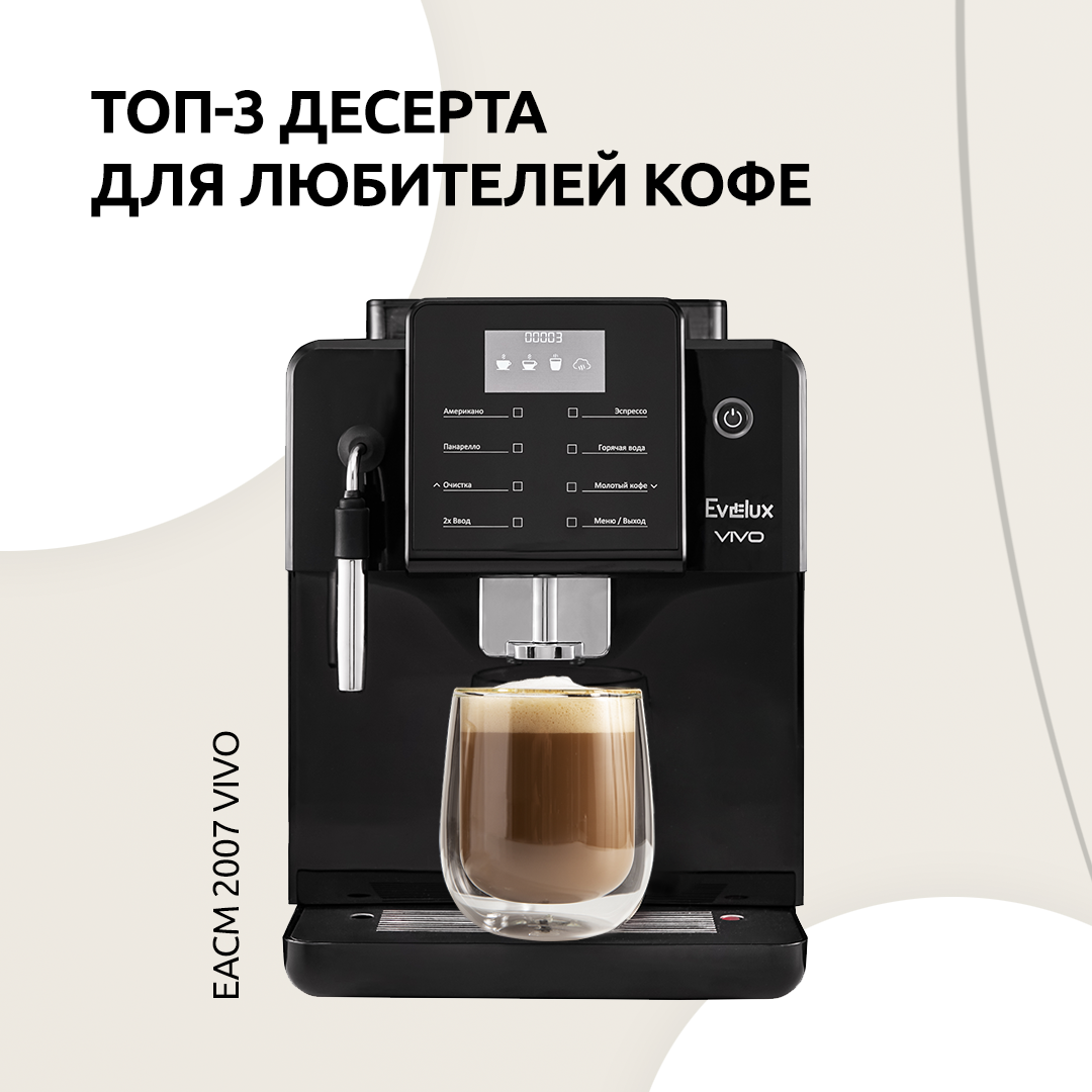 Чтобы приготовить кофе или кофейный десерт, вы можете воспользоваться кофемашиной Evelux EACM 2007 Vivo. О всех ее возможностях вы можете узнать по ссылке: https://clck.ru/3DhkVH