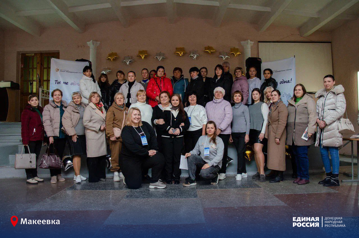 🙏 Команда проекта «Ты не одна» общественной организации «Союз женщин ДНР» при поддержке Женского Движения Единой России во второй раз посетила Макеевку. Тепло и радушно прошла встреча в стенах гостеприимного лицея № 1 «Лидер». Лектор ДонАУиГС Таисия Гладченко провела тренинг «Предназначение, имидж, эмоциональный интеллект». 💬 «Участницы согласились со мной, что сегодня определяющим фактором успеха являются социальные навыки: умение входить в контакт, сотрудничать и выходить из контакта», – отметила Таисия. Также женщины получили прекрасную возможность пообщаться с партнёрами проекта: психологами проекта «Донбасс: психология жизни», представителями центра «Мой бизнес» и юридической клиники Донбасского государственного университета юстиции. Встреча получилась насыщенной, познавательной и очень душевной. По окончании мероприятия участницы получили презенты от команды организаторов и сделали общее фото на память. 💬 «Я очень люблю проект «Ты не одна», здесь очень интересные тренинги. Это