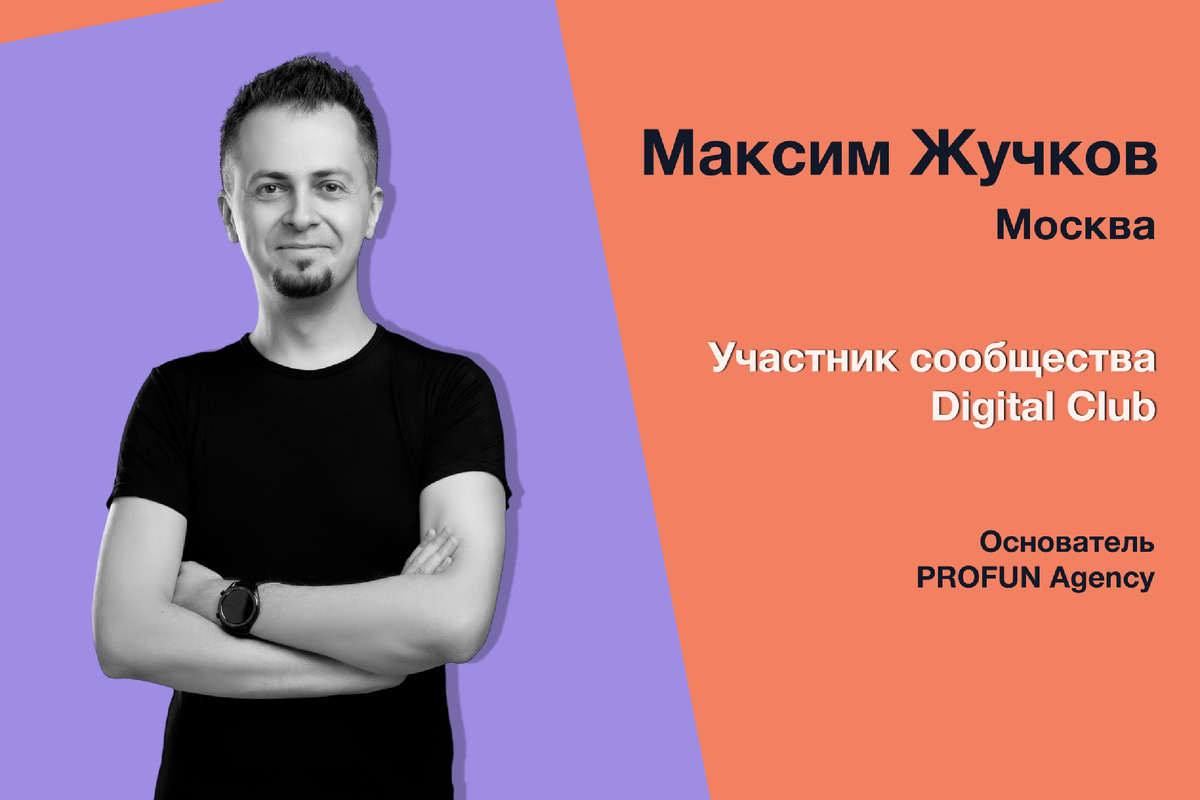 Сегодня наш гость – Максим Жучков. Максим – участник сообщества Digital Club, а также основатель PROFUN Agency.