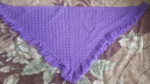 Данное изделие было связано в подарок для знакомой. Данная шали в развернутом виде 152 см, по центру вместе с кисточками 80 см, с боку от угла до угла 101 см. Каждое изделие, будь то шаль или бактус, несёт в себе частичку создателя. Она может рассказать свою историю, передавая тепло рук и душевное спокойствие. В мире моды эти изделия всегда были актуальны, оставаясь верными спутниками зимних месяцев.