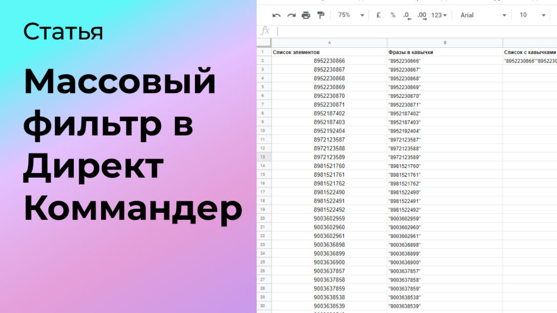 Массовый фильтр в Директ Коммандер — это функция, позволяющая управлять и обрабатывать большое количество рекламных объектов (например, объявлений, групп объявлений или кампаний) одновременно. С помощью массового фильтра пользователи могут быстро находить, сортировать и редактировать нужные элементы, основываясь на заданных критериях. В статье расскажу, как делать массовую фильтрацию в Директ Коммандер. Массовая фильтрация в Директ Коммандер нужна, когда требуется эффективно управлять большим количеством рекламных объектов. Вот самые распространенные ситуации, когда мне помогает массовая фильтрация: 1. Оптимизация больших кампаний. Когда у вас много объявлений, групп или кампаний, массовая фильтрация помогает быстро находить нужные элементы для редактирования или анализа. 2. Анализ результатов. Для оценки эффективности разных объявлений по заданным критериям (например, клики, конверсии) массовая фильтрация позволяет быстро выявить наиболее и наименее эффективные объекты. 3. Применение