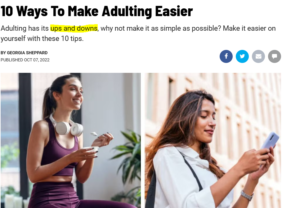 Разбираем статью о взрослении, о том, как научиться управлять своим временем и решать множество навалившихся задач. В вашем распоряжении статья, вокабуляр и вскоре будет видео. ups and downs - взлёты и падения. Скоро загрузим видео, пдф со статьей для изучения - по ссылке. 10 прилагательных: 5 устойчивых выражений: 10 глаголов: