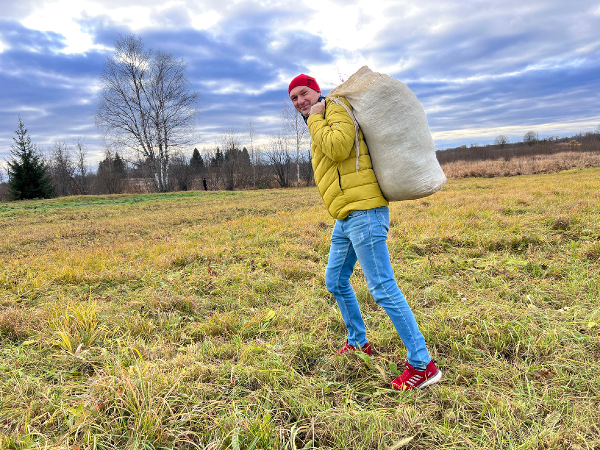 Мы всегда помогаем, когда приезжаем в деревню. Обязательное мероприятие — привезти травы. Сейчас, когда зелёной муравушки мало, косу нет смысла доставать. Редкие островки зелени скашивают серпом.