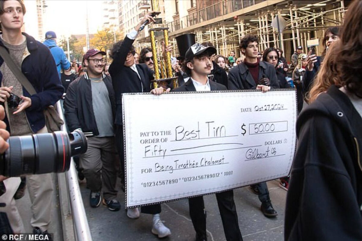 В Нью-Йорке прошел конкурс двойников актёра Тимоти Шаламе - звезды "Дюны", который еще и встречается с младшей (но самой богатой!) из клана Кардашьян - Кайли. На конкурсе двойники Тимати боролись за приз в $50 и кубок. Сбор "Тимати" организовал ютубер Энтони По, он же и выплачивал главный приз в 50 баксов самому убедительному двойнику. Однако, главным сюрпризом для всех собравшихся стало появление «оригинала». Правда, настоящего Тимати фанаты узнали не сразу. Зато как узнали, разу бросились обниматься и фотографироваться. Правда, в самый трогательный момент нагрянула местная полиция и потребовала от собравшихся разойтись. По данным FM104, в парке находилось около 900 человек, и правоохранители просто «не могли справиться» с хаосом и неразберихой. Одного из двойников задержали под гул толпы. Настоящий же Шаламе спокойно покинул парк. А главный приз в $50 достался 21-летнему студенту Майлзу Митчеллу, который пришел в костюме Вилли Вонки.