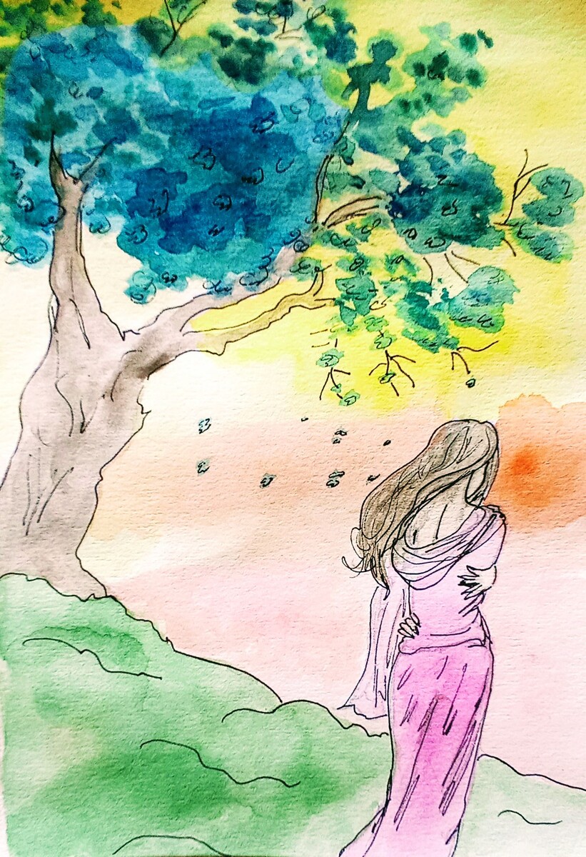 Девушка плавно двигалась , прикрепляя искусственные цветы к дымным шторам .
