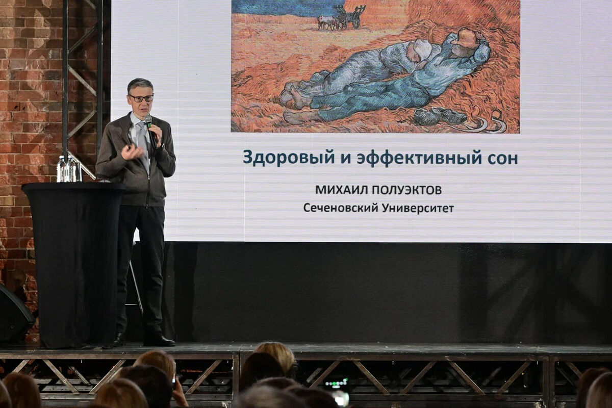 Невролог-сомнолог Михаил Полуэктов ответил на самые волнующие вопросы о сне на своей лекции в Воронеже Жители Воронежа получили возможность посетить лекцию, на которой они не уснут, а, наоборот, научаться правильно спать. На площадке «1900» невролог-сомнолог Михаил Полуэктов выступил на тему «Сон и сновидения. Как спать и высыпаться» в рамках проекта «Лекторий ЭФКО». Когда вы последний раз высыпались? В наше время этот вопрос приходится задавать именно в такой формулировке. Хоть мы и спим каждый день, мало кто отдыхает достаточно. Именно поэтому корреспондент «Ё!» отправился изучать сны и сновидения вместе с кандидатом медицинских наук Михаилом Полуэктовым. Сон делится на несколько фаз, у каждой из которых свои функции. Самые важные — фазы медленного и быстрого сна. Во время медленного сна тело восстанавливается ментально и физически: мозг обрабатывает информацию и откладывает ее в памяти, восстанавливаются и растут клетки и мышечные ткани. «70% всей суточной продукции гормона роста вы