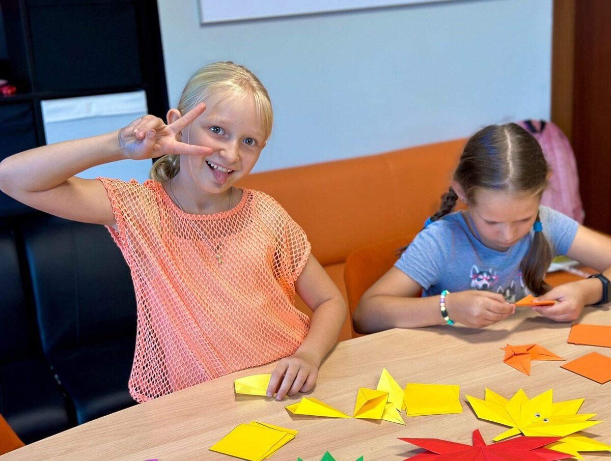 В ходе занятия ребята экспериментировали с разными цветами бумаги, создавая яркие и красочные композиции, учились складывать бумагу определённым образом, чтобы получить нужную форму листа.