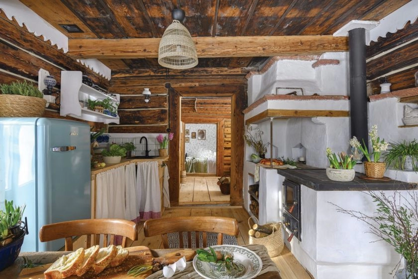 Сегодня идем в гости, чтобы отвлечься от хитроумных дизайнерских решений, строгого минимализма и прочих современных концепций. Перед нами – простой деревенский дом в горах, где размеренная жизнь кажется такой же крепкой, как и бревенчатые стены дома. Это место – убежище от суеты, где вместо телевизора – огромное панорамное окно, из которого открывается потрясающий вид на лес. Хозяева – Моника и Петр, оба поклонники «медленного» образа жизни, мастерски отреставрировали дом, воплощая дух прошлого и с любовью сохраняя его детали. А помогал им друг Марек, который и нашел дом. Моника – лингвист, а Петр – экономист и музыкант с богатой историей: раньше он играл в блэк-метал группе. Обоим близка деревенская жизнь без лишней спешки с упором на аутентичность и уют. Постепенно, начиная с первых экспериментов в собственном доме, супруги научились на практике всем тонкостям реставрации и строительства деревянных домов. В этом деле им помог не только личный опыт, но и видеоролики из интернета. Поис
