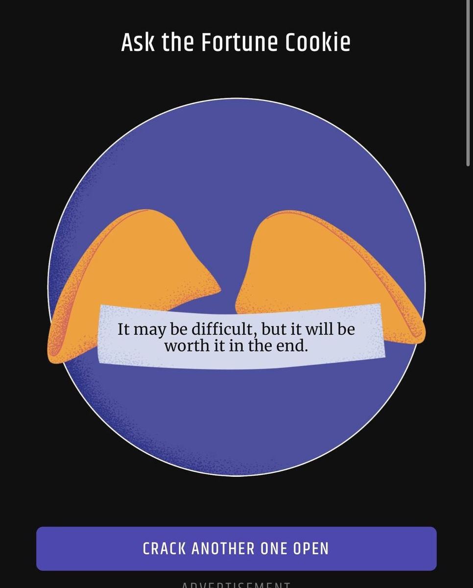 Мы с учениками на уроке обратились к специальному сайту, где печенька предсказывала наше будущее🔮 Было интересно интерпретировать каждое предсказание, рассуждать как это применимо в нашей жизни. Возможно, какие-то фразы покажутся общими, но иногда важно услышать эти слова (даже от печеньки!) ⏩Мне вот попалось: «It may be difficult, but it will worth it in the end”. ("Это может быть трудно, но в конце концов оно того стоит".) Попадание на все 1️⃣0️⃣0️⃣! Всегда, когда устаю, и кажется нет уже сил и желания делать что-то, повторяю себе эти слова, что это того стоит. Вы верите в такие предсказания? ⚡️ А какое послание попалось у вас? Пишите в комментариях 🙃