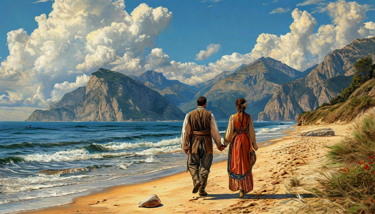 Сети на Журавлей были расставлены ещё с утра. Дома имелся запас сушёной рыбы, краюха свежего хлеба, дикий лук и чеснок, гроздья чёрного винограда, а также оставшееся со вчерашнего дня жареное мясо подстреленных Охотником куропаток. О чем беспокоиться? Вдоволь всего. Они просто шли по берегу и наслаждались жизнью. Немолодой уже мужчина и женщина. Шелестели, накатываясь на песок, волны, стрекотали цикады, и ласковый ветер трепал их волосы, принося запах моря и ароматы летних трав. И не было им дела до Журавлей. И не было им дела до осени, которая начнётся ещё очень и очень нескоро. А может и вообще не начнётся?