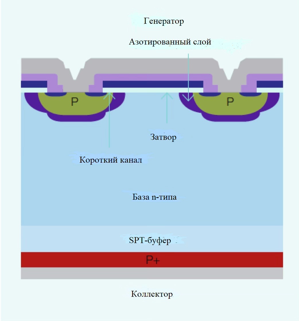 Рисунок 1: Поперечное сечение планарной технологии SPT+ IGBT от ABB