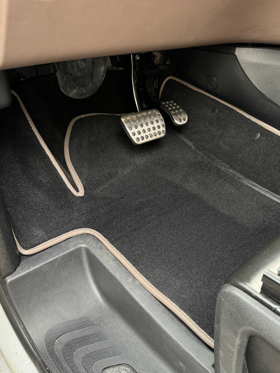 Mercedes V-class Изготовили ворсовые ковры по индивидуальным замерам на весь салон и в багажник. Кожаная окантовка была сделана в цвет сидений. На водительской стороне ковер с 3Д бортами, остальные все пошиты в классическом варианте. Так же можем предложить вам изготовление вышивки , кожаные ковры и любые автоаксессуары. Например, сумки или подушки на подголовники Подробнее по услуге: https://vinylkazan.ru/poshiv-kovrikov-v-salon-i-bagazhnik-avtomobilya/