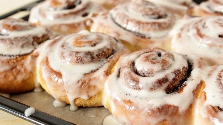 Синнабоны — это популярная выпечка в виде булочек с корицей и кремовой глазурью. Ингредиенты: Для заливки: Приготовление: Разморозьте слоёное тесто согласно инструкции на упаковке. Разогрейте духовку до 180 градусов. Раскатайте тесто в прямоугольник толщиной около 5 мм. Нанесите на тесто творожный сыр равномерным слоем. Можно посыпать корицей. Сверните тесто в рулет и нарежьте на равные кусочки. Выложите булочки на противень, застеленный пергаментной бумагой, и отправьте в духовку на 20-25 минут. Пока булочки выпекаются, приготовьте заливку. Для этого смешайте сметану с сахаром до получения однородной массы. Готовые булочки достаньте из духовки и сразу же залейте сметаной с сахаром. Дайте булочкам немного остыть и подавайте к столу. При желании вы можете посыпать булочки сахарной пудрой перед подачей. Приятного аппетита!