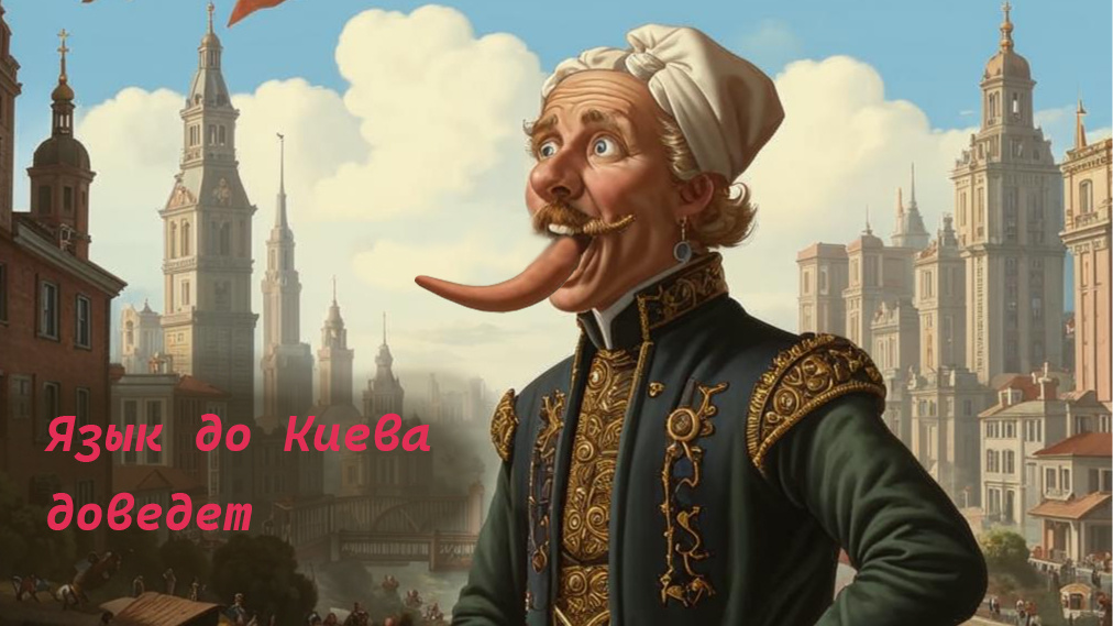 Язык в пословицах крайне популярен, на него практически все несчастья сваливают. Вот человека поколотили из-за него, не смог "удержать язык за зубами", вроде спрашивал дорогу до Киева, так он его и до кия довел (Язык до Киева доведет и до кия (и до палки) - то есть до палки, побоев.)