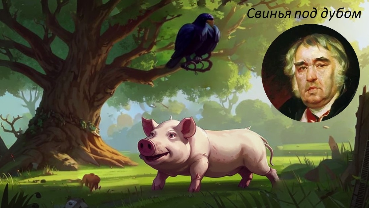 Басня «Свинья под дубом» Иван Андреевич Крылов с удивительной легкостью и юмором раскрывал человеческие пороки, изображая их в своей неподражаемой манере. Его басня «Свинья под дубом» не стала исключением. Вот её главные герои: Свинью Крылов представляет, как ленивого и невежественного человека. Он не стремится к знаниям и не хочет никого слушать, предпочитая заниматься лишь своими делами. Крылов не случайно выбрал именно это животное для своего произведения. У свиней уникальная анатомия шеи и головы: их шея сравнительно короткая, а шейные позвонки не позволяют им высоко поднимать голову. Из-за этого свиньи видят только то, что находится прямо перед ними или чуть ниже. Этот образ усиливает идею о человеке, который не только не хочет ничего слушать и знать, но и не способен на это. Ворон в басне пытается вразумить свинью, но он его не слушает. Это символизирует человека, который стремится донести свою точку зрения до окружающих, но не всегда находит понимание. Дуб в басне олицетворяет м